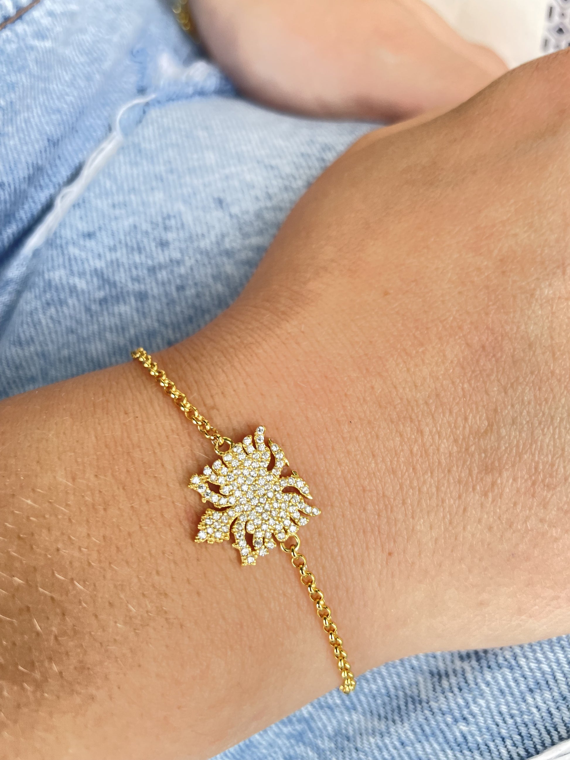 The bracelet boasts a majestic eagle adorned with shimmering zirconia stones. The eagle, symbolizing power and freedom, serves as the focal point of the piece. This bracelet in 24k gold plated in silver 925 radiates sophistication and confidence, making it an exquisite choice of elegance with a hint of boldness.
