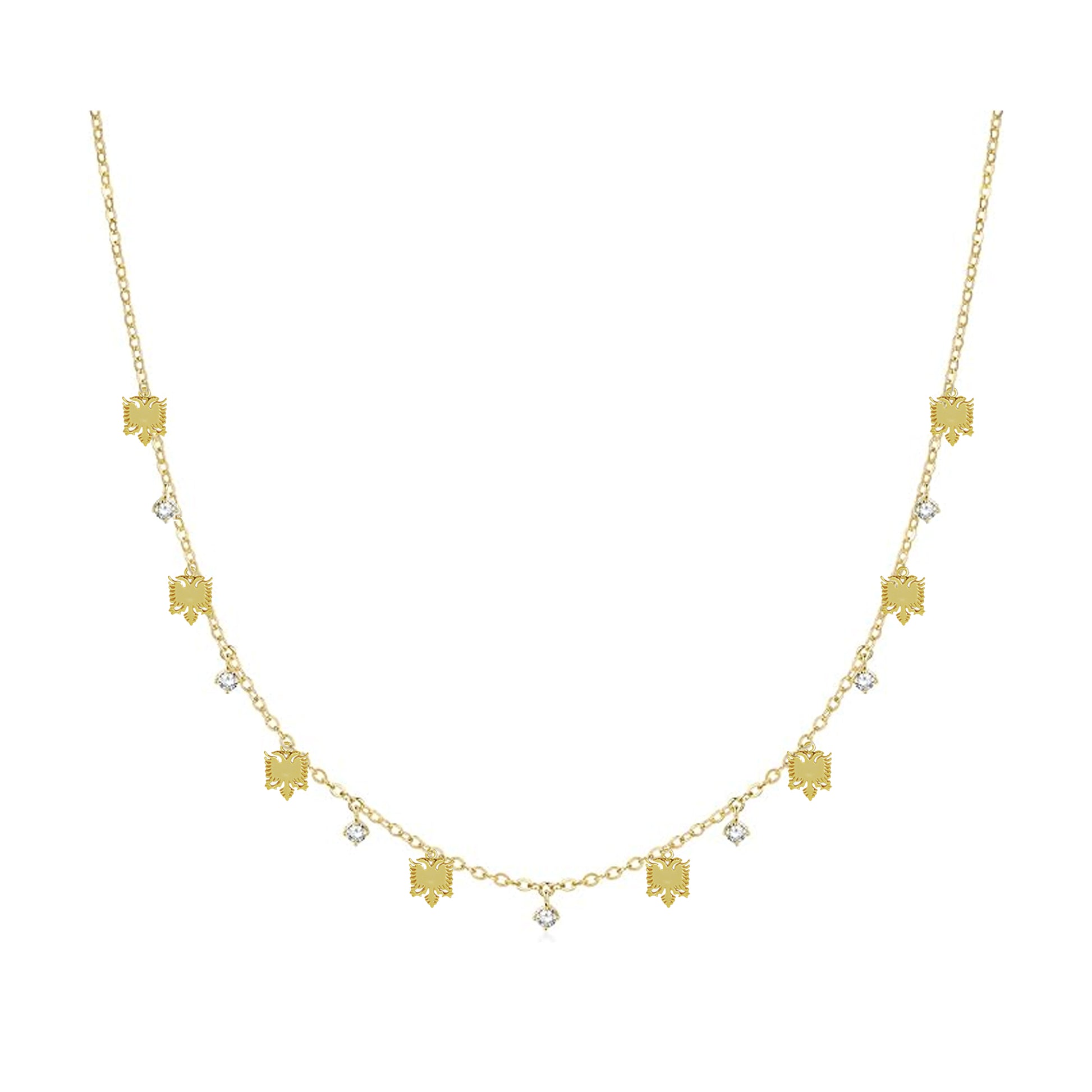 This 925 sterling silver necklace, plated with gold 24k, exudes timeless elegance. Adorned with sparkling cubic zirconia accents and intricate Albanian eagle motifs, it's a statement piece for any occasion, blending sophistication with national pride.