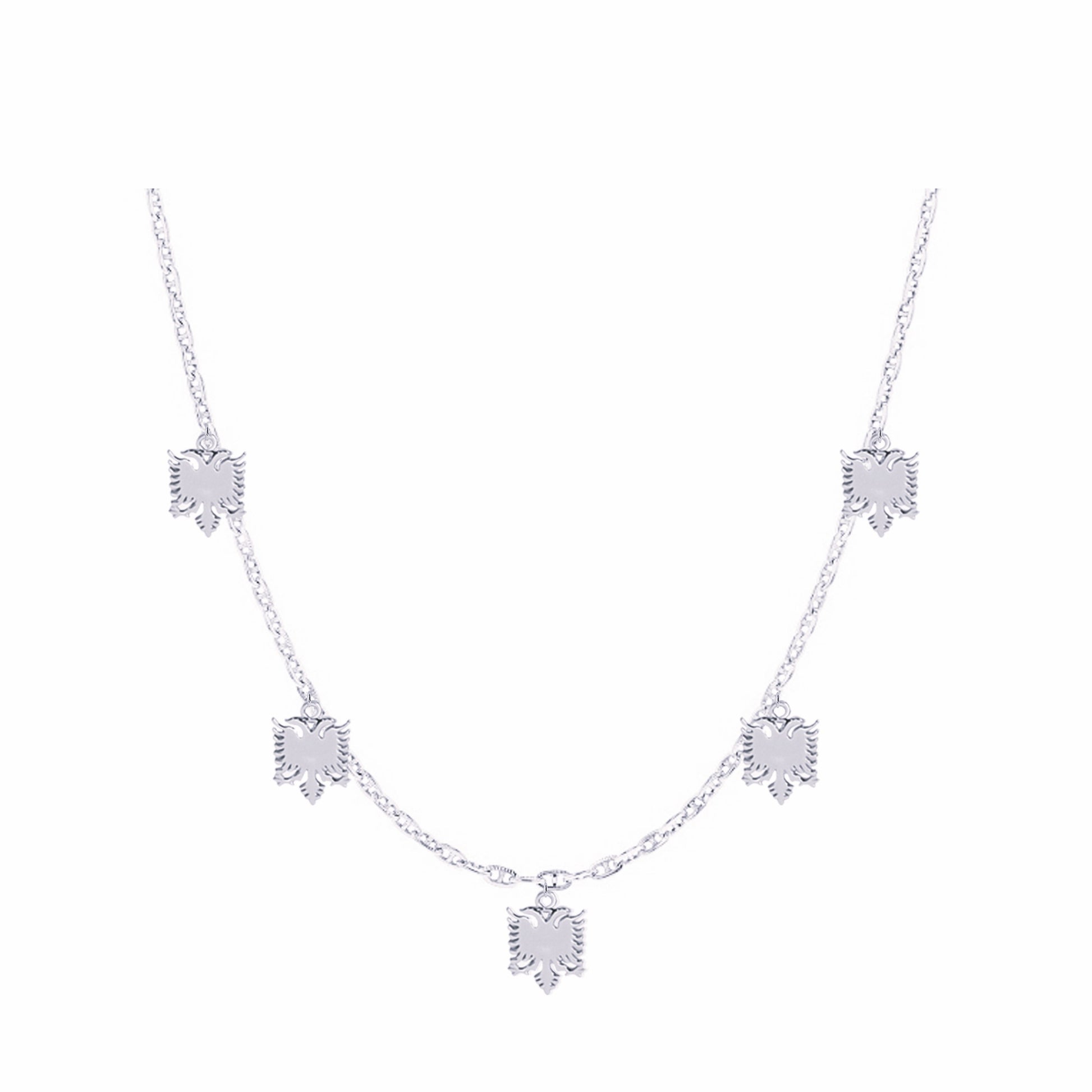 Experience the essence of freedom and grace with our enchanting necklace, featuring five majestic eagles. Their presence adds a celestial charm, capturing attention and inspiring awe. Just as stars guide us through the night sky, the eagles guide our journey with their majestic allure, illuminating our path with timeless beauty. Made with care in 925 sterling silver.